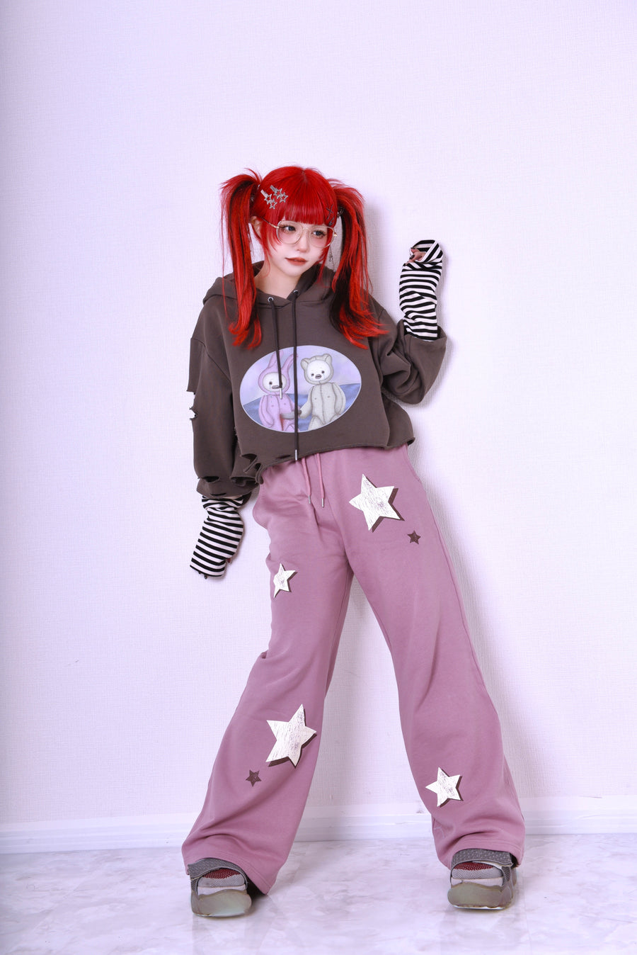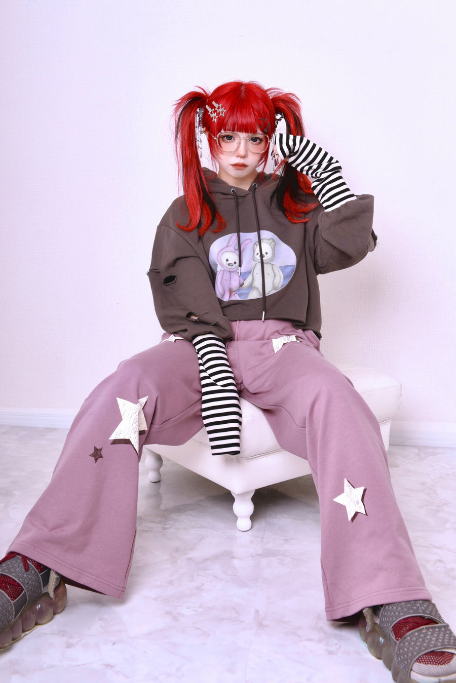 Both the Rabbit Hoodie Tops are available in two colors, gray and pink.
