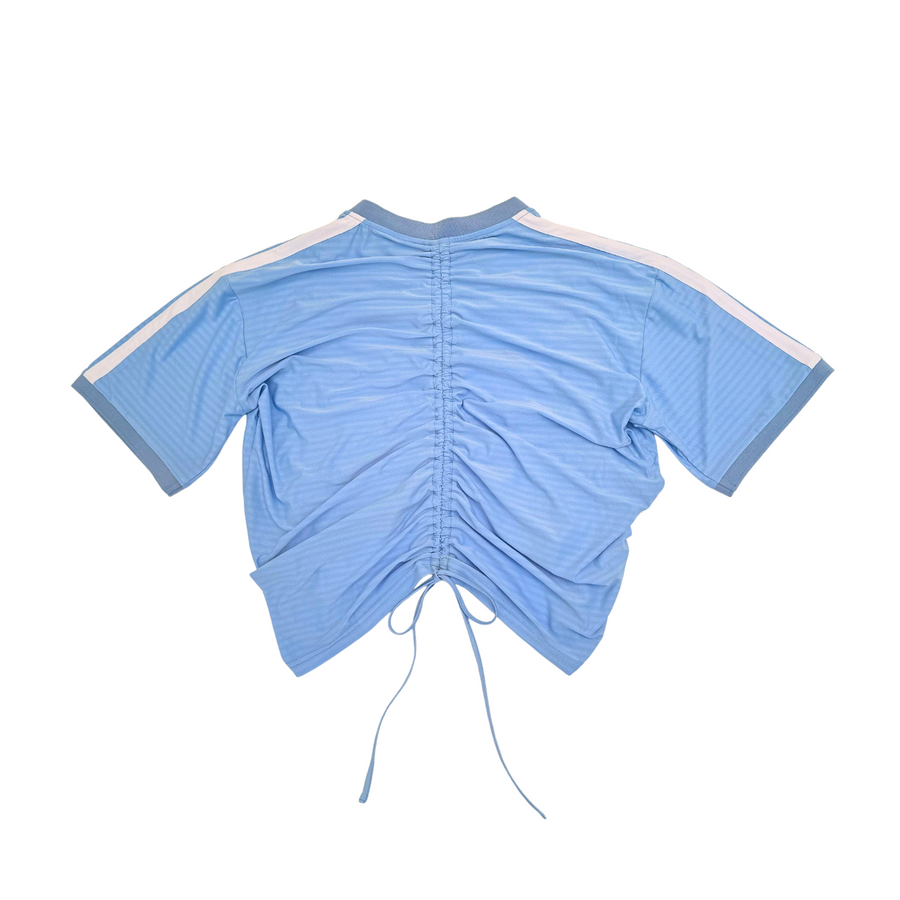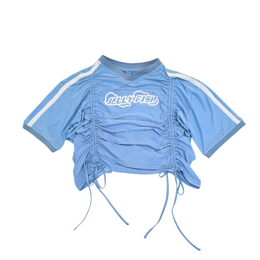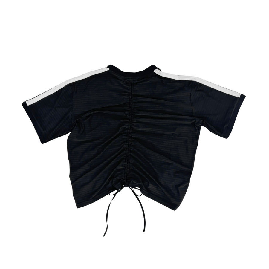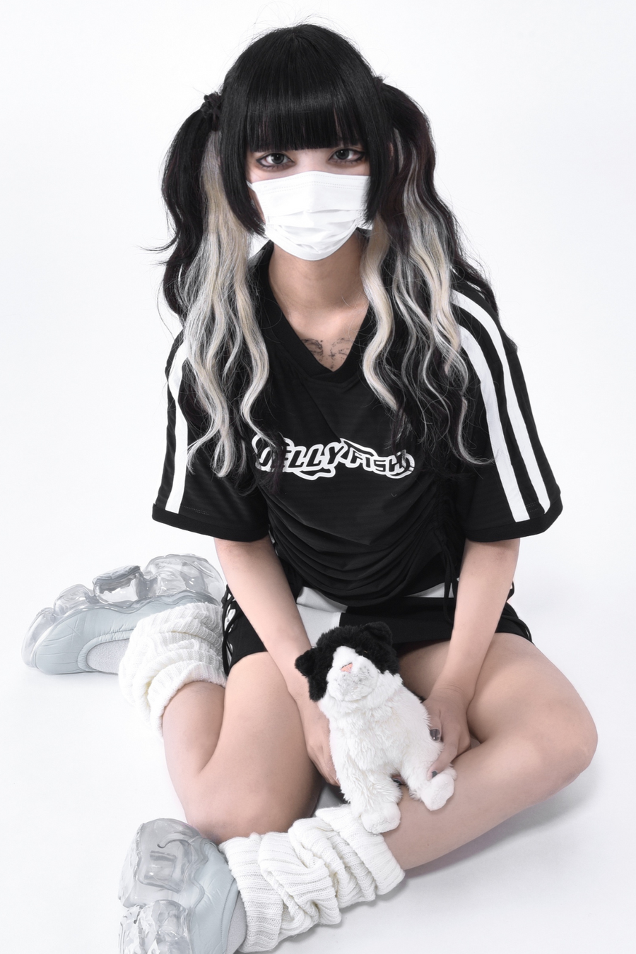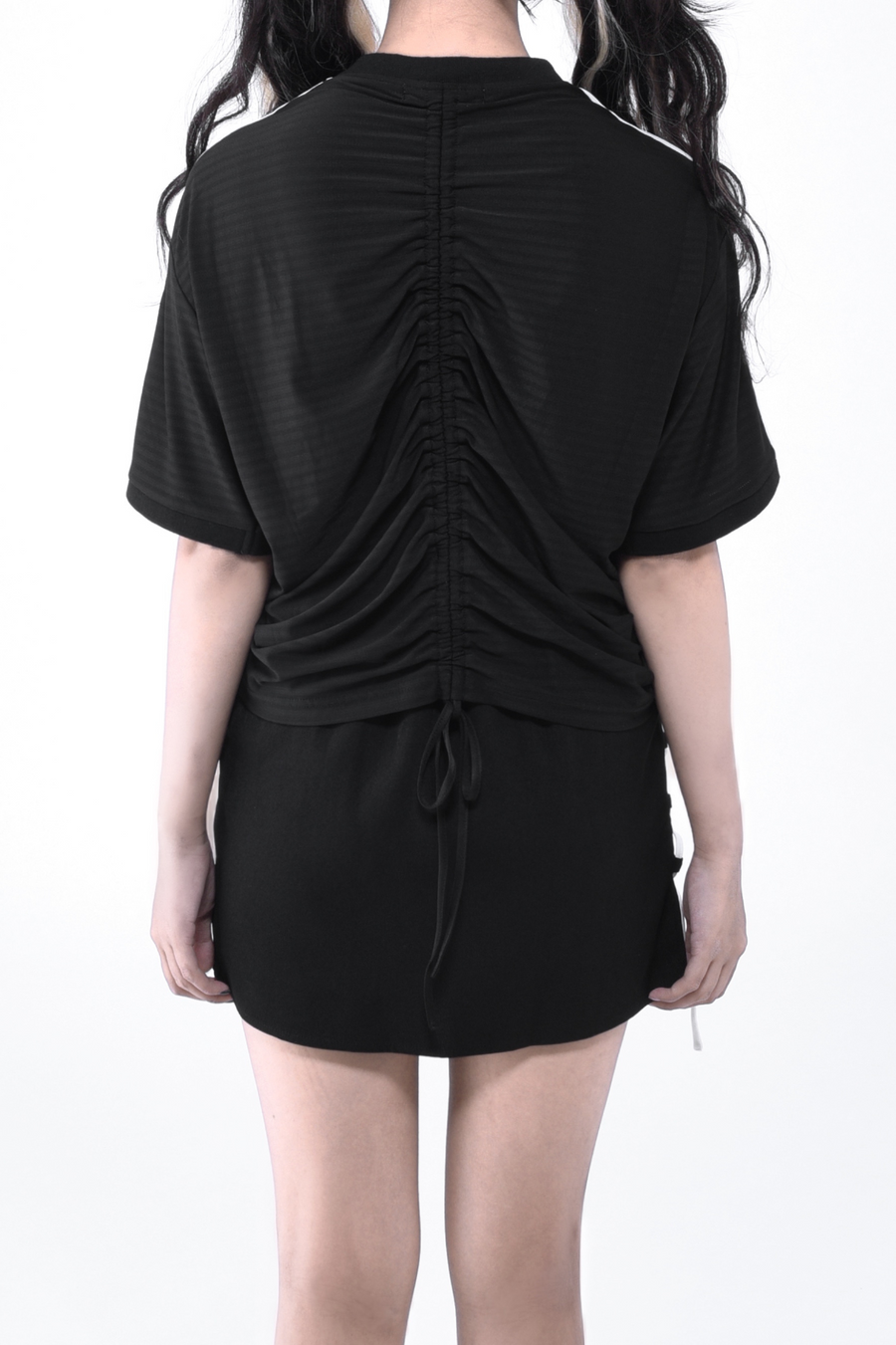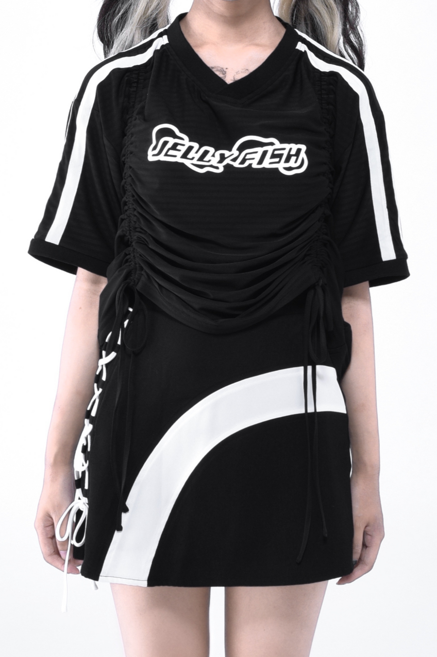 The key points are the simple and sporty logo and the fact that you can show off your bottoms by raising the shirring!