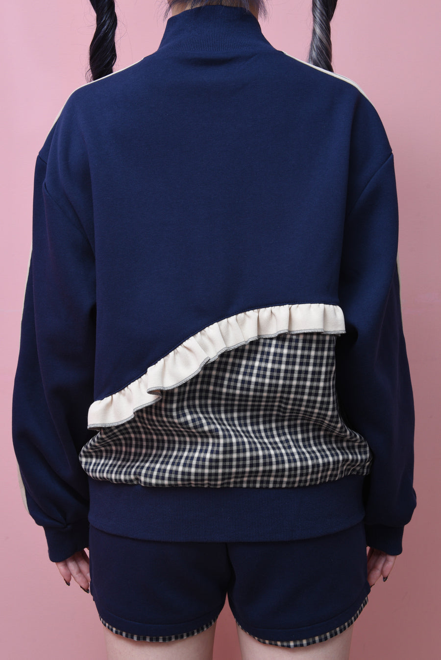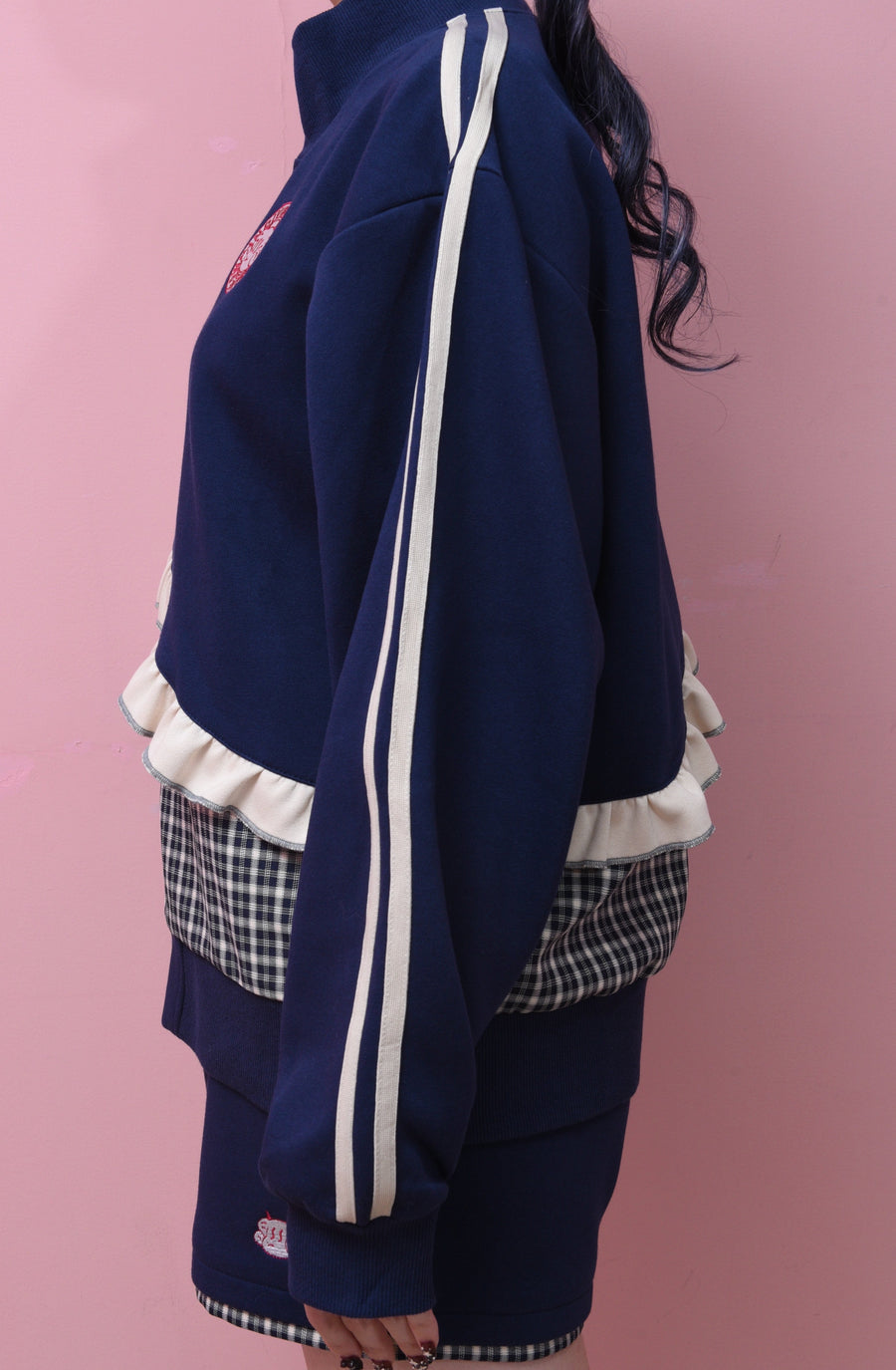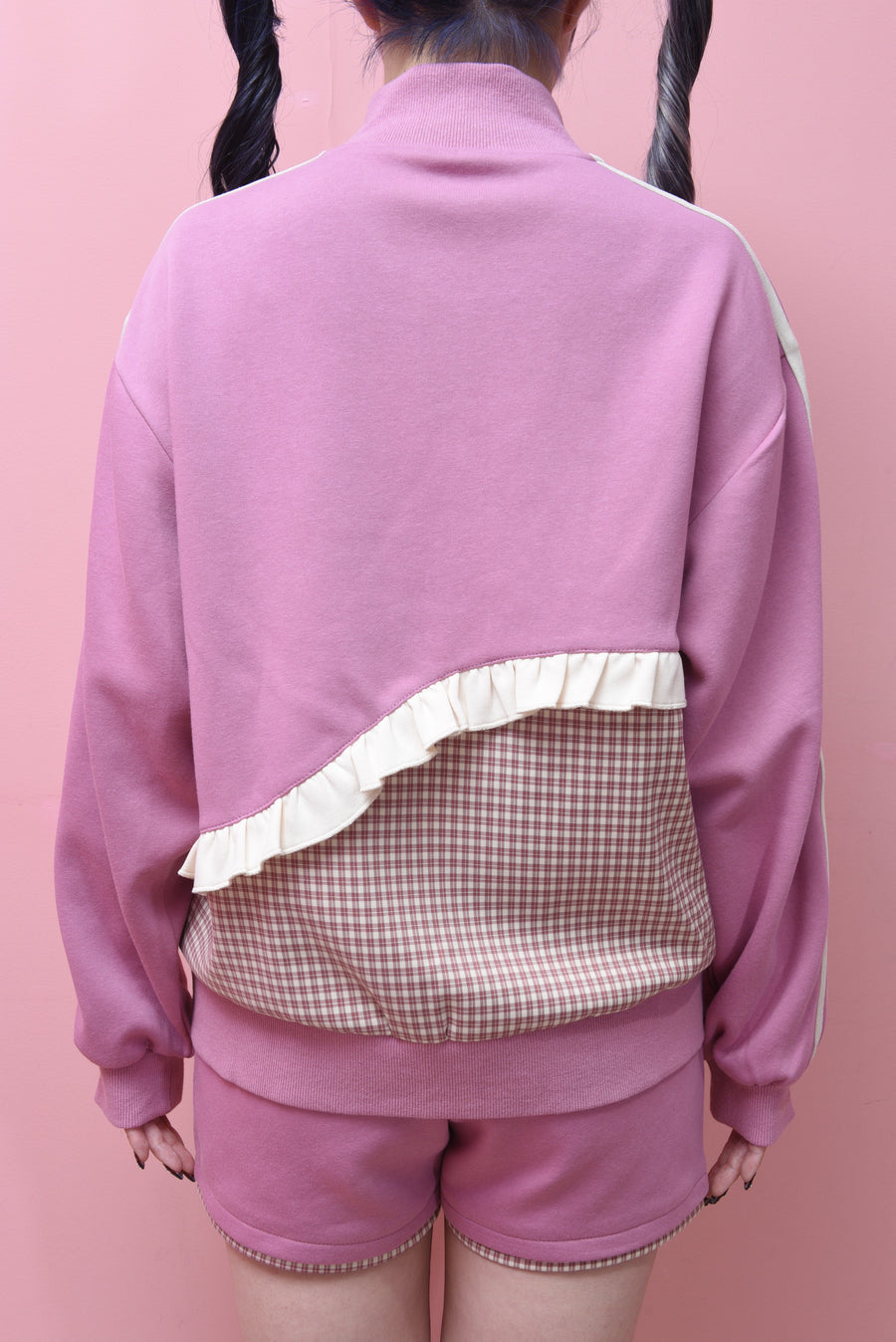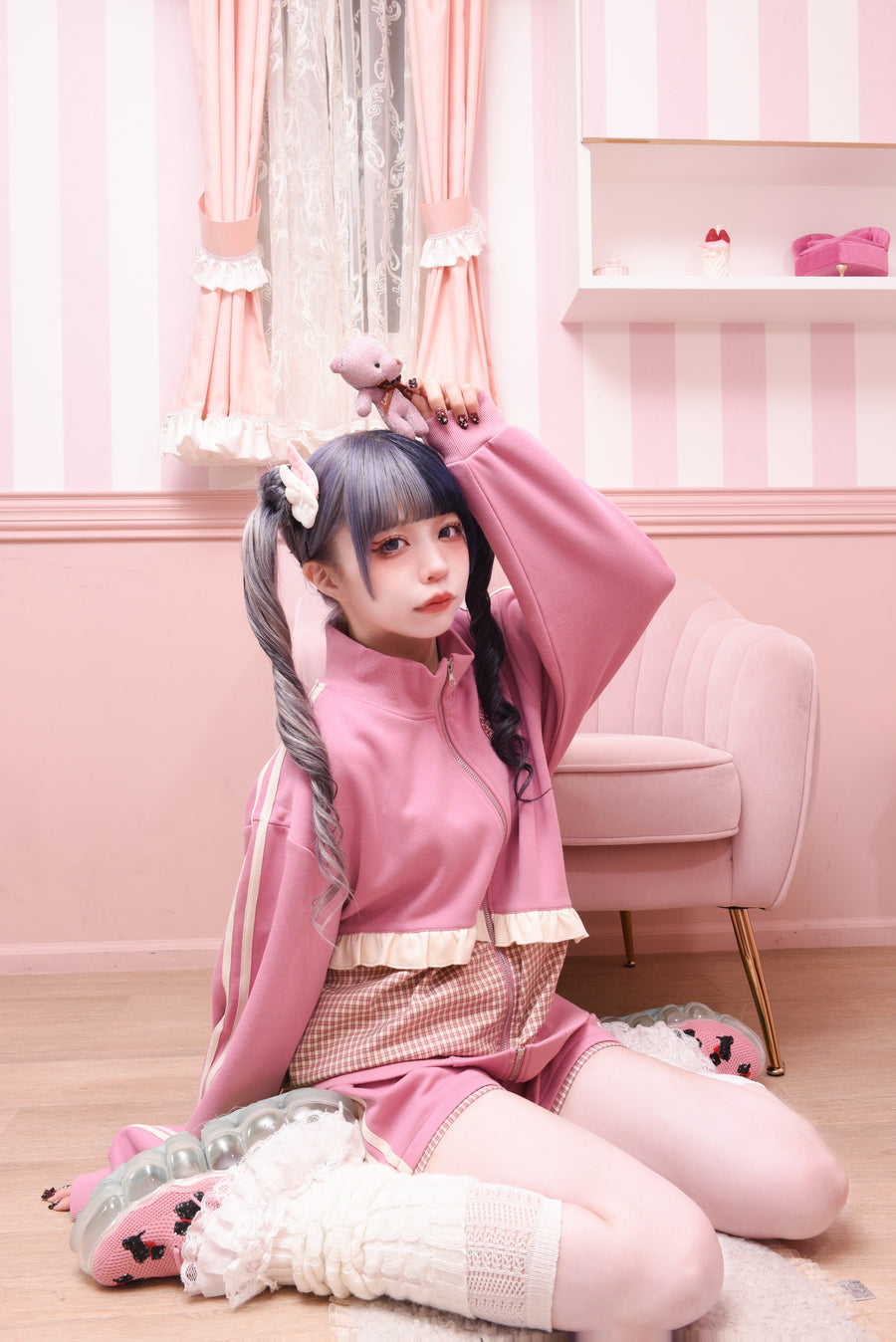 オフホワイトのフリルとラインが、ジャージ生地にマッチしている”可愛すぎない”、可愛さです。