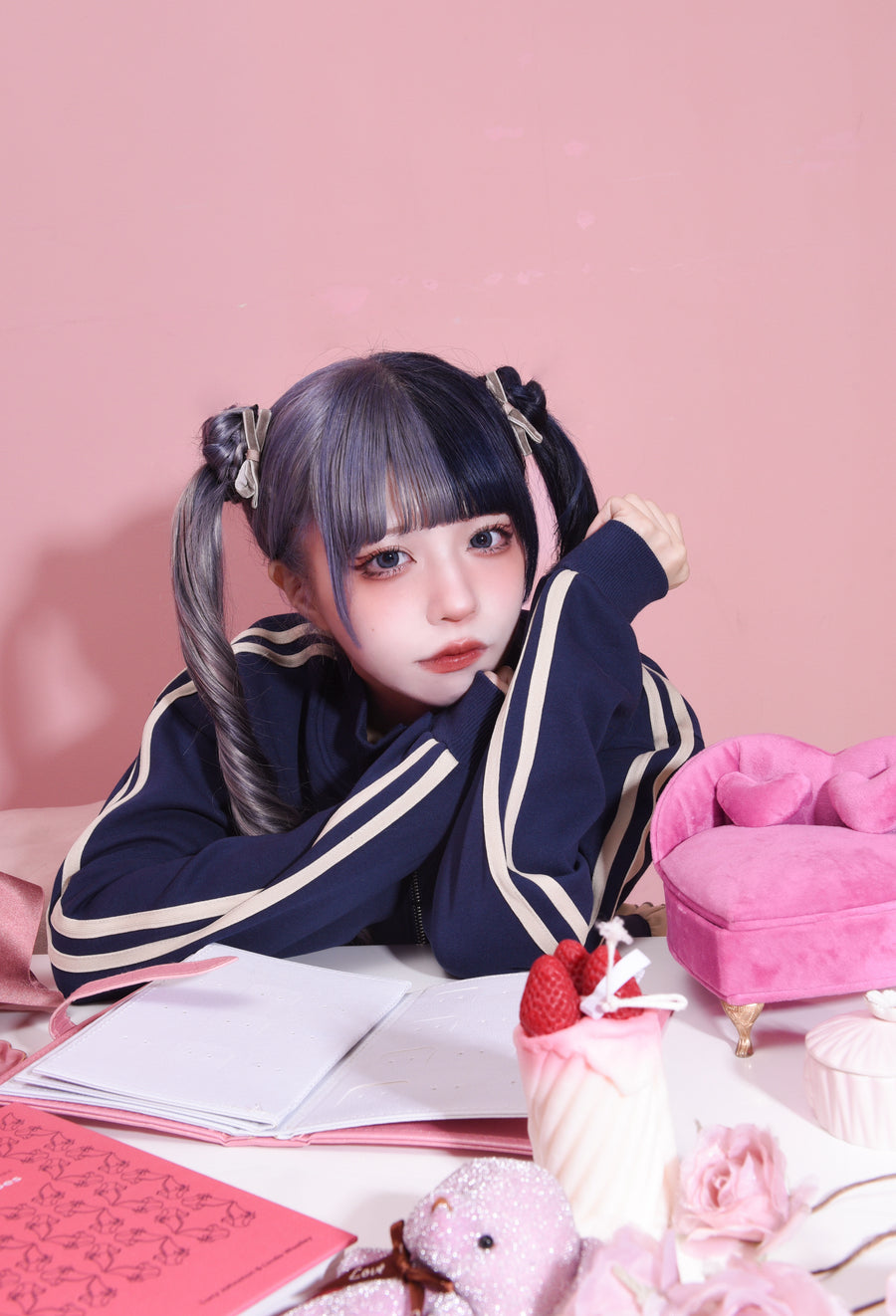 パジャマとジャージをミックスさせたトラックジャケットです。